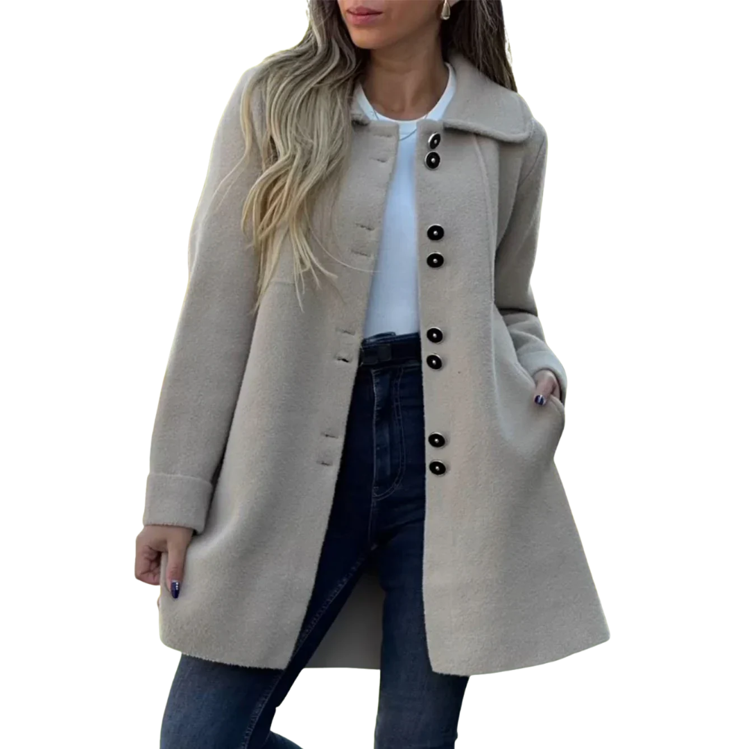 Este abrigo taupe claro irradia clase y sencillez. Su tejido suave resulta cómodo y ofrece calidez en los días más frescos. Gracias a su corte elegante y los botones en contraste, es la prenda perfecta tanto para looks casuales como para ocasiones más formales.